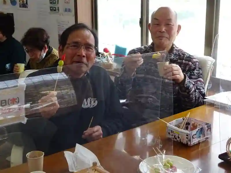 | 休憩場所にもパーティションを置いています。 | 密にならないようにお客様間にパーティションを置いています。 |